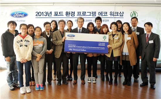 정재희 포드코리아 대표(가운데)와 올해 후원대상자로 선정된 환경단체 관계자들이 7일 기념촬영하고 있다.