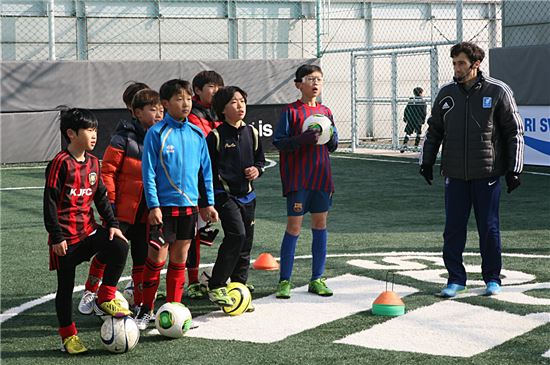 [아시아경제 장인서 기자]한국 풋살국가대표팀의 라울 곤살레스 에스쿠데로 감독(46)이 지난 16일 용산 아이파크몰을 찾아 '유소년 풋살 클리닉'을 열었다. 에스쿠데로 감독은 이날 열린 '제1회 아이파크몰 유소년 풋살 대회'에 참석해 어린이들에게 풋살 기술과 기본기를 전수했다. 에스쿠데로 감독은 어린이들에게 패싱과 드리블, 슈팅과 같은 기본 기술을 직접 지도하고, 유소년 클럽 지도자들에게도 풋살의 전술과 전략에 대해 설명했다. 에스쿠데로 감독은 "한국 어린이들은 스페인 어린이들 못지않은 잠재력을 지녔다"며 "풋살 월드컵 본선 진출과 우승의 꿈도 유소년 선수들이 키워 나갈 것"이라고 총평했다. 한국풋살연맹의 주최로 열린 이번 행사는 축구 꿈나무 육성과 풋살 저변확대를 위해 마련됐다. 아이파크몰은 올해 처음 열린 아이파크몰 유소년 풋살 대회를 내년부터는 춘계(4~5월)와 추계(9~10월) 각 두 달씩 확대 운영하고 각종 유소년 클럽 대항 풋살전과 어린이 풋살 교실을 지속적으로 운영할 예정이다.장인서 기자 en1302@asiae.co.kr<ⓒ세계를 보는 창 경제를 보는 눈, 아시아경제(www.asiae.co.kr) 무단전재 배포금지>