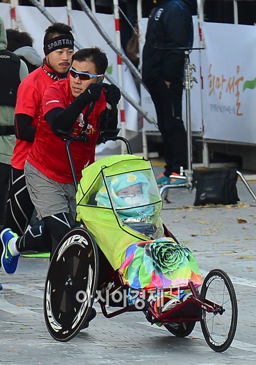 [아시아경제 백소아 기자] 17일 서울 광화문광장에서 열린 나이키 위런서울 10K에서 은총이 아빠로 알려진 박지훈 씨와 박은총 군이 함께 출발선을 넘어 달리고 있다.백소아 기자 sharp2046@asiae.co.kr<ⓒ세계를 보는 창 경제를 보는 눈, 아시아경제(www.asiae.co.kr) 무단전재 배포금지>