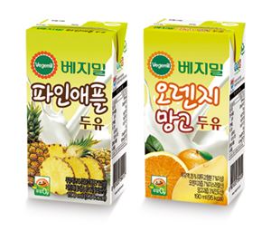 [아시아경제 이광호 기자]정식품이 상큼한 과일에 두유의 식물성 영양이 함유된 신제품 과일믹스 두유 '베지밀 파인애플 두유'와 '베지밀 오렌지망고 두유' 2종을 출시했다고 18일 밝혔다.새로 선보인 베지밀 과일믹스 두유 2종은 젊은 층들에게 선호도가 높은 파인애플과 오렌지 망고의 진짜 과즙을 넣어 과일의 상큼함과 두유의 고소하고 풍부한 맛과 향을 동시에 느낄 수 있다. 베지밀 파인애플 두유는 피로회복, 식욕증진에 도움을 주는 파인애플의 과즙 10%가 함유돼 파인애플 본연의 새콤 달콤한 맛을 살린 것이 특징이다. 또한 베지밀 오렌지망고 두유는 피로회복과 피부 미용 등의 뛰어난 효능을 지난 오렌지 과즙 7%와 식이섬유가 풍부한 망고의 과즙 3%를 믹스해 망고의 달콤함과 오렌지의 상큼함을 동시에 즐길 수 있는 제품이다.이동호 정식품 홍보팀장은 "최근 소비자들 사이에서 맛과 영양을 동시에 충족시키는 믹스 제품이 인기를 끌고 있다"며 "이번 신제품은 이러한 소비자들의 니즈를 적극 반영해 개발한 신제품으로 정식품은 앞으로도 소비자들의 니즈를 반영한 제품 개발에 최선을 다할 것"이라고 말했다.한편 베지밀 파인애플 두유와 베지밀 오렌지망고 두유의 소비자가는 190㎖ 한 팩에 830원이다.이광호 기자 kwang@asiae.co.kr<ⓒ세계를 보는 창 경제를 보는 눈, 아시아경제(www.asiae.co.kr) 무단전재 배포금지>