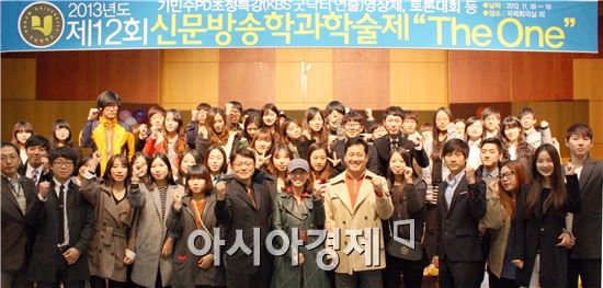 [아시아경제 노해섭 기자]호남대학교 신문방송학과(학과장 김명중)는 18일 광산캠퍼스 중앙도서관 1층 국제회의실에서 2013년 제12회 태동제 ‘The one’을 개최했다.신문방송학과 김명중, 이원형, 김기태, 김덕모, 이준상 교수와 재학생 등 70여명이 참석한 이날 행사에서는 ‘KBS 수신료 인상 무엇이 문제인가?’ 를 주제로 한 토론대회와 현직 언론인 선배들과의 대화 시간, KBS 기민수 드라마PD의 초청특강, 신·구 학생회장 분과장 인사, 영상분과 동영상 시청과 현장학습 시상식 등이 실시됐다. 토론대회에서는 재학생 7명이 각각 패널과 사회자를 맡아 ‘KBS 수신료 인상 무엇이 문제인가?’에 대해 의견을 나눴다. 또 현직 선배로는 MBC 류권형 아나운서, 광주일보 박진표 차장, SBS 최복희 PD가 초청돼 실제 언론 현장에서의 어려움과 보람 등에 대한 질의응답 시간으로 진행됐다.이어 오후 2시에는 최근 종영된 인기 드라마 ‘굿닥터’를 비롯 ‘오작교 형제들’, ‘그저 바라보다가’ 등 다수의 작품을 연출한 KBS 기민수 PD를 초청해 ‘드라마 제작과 PD’를 주제로 특강이 실시됐다.기민수 PD는 “언론인 중에서도 방송PD를 꿈꾸고 있는 재학생이라면 창의적인 생각을 하는 것이 중요하다”며 사고력 향상의 중요성을 강조했다.또 학과 내 영상분과 학생들이 직접 만든 동영상을 시청하고, 학과 현장학습 후 결과물에 대한 시상식이 이어졌다. 이날 대상에는 손희석(1년), 사진부문에는 한유하(2년), 장문문(3년), 보도기사부문에는 김은용(3년), 영상부문에는 배성웅(3년)씨가 각각 상장과 부상을 수상했다.노해섭 기자 nogary@<ⓒ세계를 보는 창 경제를 보는 눈, 아시아경제(www.asiae.co.kr) 무단전재 배포금지>