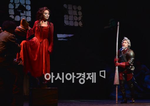 [아시아경제 송재원 기자] 뮤지컬 배우 조승우, 이영미가 19일 오후 서울 중구 홍인동 충무아트홀 대극장에서 열린 뮤지컬 ‘맨 오브 라만차(Man Of La Mancha)’ 프레스콜에 참석해 열연하고 있다.‘맨 오브 라만차’는 꿈을 찾아 떠나는 돈키호테의 여정을 담은 브로드웨이 불후의 명작으로 정성화, 조승우, 김선영, 이영미, 정상훈, 이훈진, 서영주 등이 출연한다. 19일부터 2014년 2월 9일까지 충무아트홀 대극장에서 공연된다.송재원 기자 sunny@asiae.co.kr<ⓒ세계를 보는 창 경제를 보는 눈, 아시아경제(www.asiae.co.kr) 무단전재 배포금지>