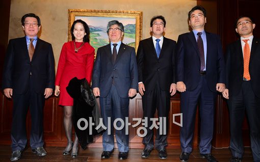 [아시아경제 백소아 기자] 김중수 한국은행 총재가 20일 서울 중구 한국은행 본관에서 열린 경제동향간담회에서 참석자들과 기념사진 촬영을 하고 있다. (왼쪽부터) 서영주 한국조선해양플랜트협회 상근부회장, 이종은 세종대 교수, 김 총재, 안동현 서울대 교수, 이인재 한국노동연구원장, 문정엽 대신경제연구소 대표이사. 이날 김 총재는 "환율이 많이 변한 건 사실"이며 호주, 인도, 터키 등의 통화가치는 많이 내렸지만 "우리나라는 거기서 벗어나 있다"고 언급했다.백소아 기자 sharp2046@asiae.co.kr<ⓒ세계를 보는 창 경제를 보는 눈, 아시아경제(www.asiae.co.kr) 무단전재 배포금지>