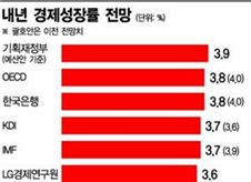 [아시아경제 김혜민 기자] 경제협력개발기구(OECD)가 내년 우리나라의 국내총생산(GDP) 성장률을 3.8%로 전망한 가운데 각 기관별로 적게는 0.1%포인트, 많게는 0.3%포인트까지 경제전망에 차이를 보이고 있다. OECD가 우리나라의 경제성장률 전망치를 내놓은 19일 한국개발연구원(KDI)은 우리나라의 내년 경제성장률을 종전 3.6%에서 3.7%로 상향 조정했다. KDI의 전망은 기획재정부가 지난 9월 내년도 예산안을 발표하면서 제시한 3.9%와 한국은행의 3.8%보다는 다소 낮은 수치다. 앞서 국제통화기금(IMF)은 KDI와 같은 3.7%를 전망한 바 있다. 민간연구소인 LG경제연구원은 우리나라가 내년 3.6% 성장할 것으로 내다봤다. 경제성장률 전망치에는 온도차가 있지만 이들 기관은 한 목소리로 올해보다는 경제여건이 나아질 것으로 내다봤다. 세계경제가 회복세를 보이면서 우리나라의 수출여건도 개선될 것이라는 분석이다. KDI는 "세계경제가 선진국을 중심으로 완만히 회복함에 따라 우리나라의 수출 증가세도 확대될 것으로 보인다"고 설명했다. 그러나 세계경제가 예상만큼 회복세를 보이지 않을 경우 우리나라의 경제성장에도 영향을 미칠 수 있다고 내다봤다. 미국, 유로존(유로화 사용 17개국) 등 세계경제 여건과 환율 변동 등에 우리나라의 경제 성장률이 좌우될 수 있다는 의미다. OECD는 "한국경제에서 수출이 GDP의 절반 이상을 차지하는 만큼 세계경제 여건과 환율 변동에 특히 민감할 수 있다"고 말했다. KDI 역시 "미국의 양적완화 축소가 재정여건이 취약한 유로존 국가와 신흥시장국의 금융불안으로 이어져 세계경제의 완만한 회복세가 약화될 경우 우리나라의 위험요인으로 작용할 수 있다"고 지적했다. 높은 가계부채도 여전히 문제로 지적됐다. OECD는 우리 정부의 정책효과를 통해 당초 전망보다 나아질 가능성이 있지만 여전히 내부 위험요인이 될 수 있다고 경고했다. 우리나라의 가계부채가 지난해 말 기준 가계 가처분소득 대비 164%에 달하는 등 여전히 높기 때문에 민간소비를 제약할 수 있다는 것이다. KDI 역시 "가계부채 중 비은행권이 차지하는 비중이 지속적으로 상승하고 있음에 유의할 필요가 있다"며 "중장기적으로 안정적인 성장세를 유지하는 데 걸림돌로 작용할 수 있다"고 지적했다. 이와 관련해 현오석 부총리 겸 기획재정부 장관은 대전에서 열린 정책세미나에서 민간주도의 경기회복, 경기체질을 바꾸는 구조개선, 국민들의 체감경기 개선 등 세 가지 방향에 주안점을 두고 우리나라의 경제성장률을 세계 평균보다 높이겠다고 강조했다. 우리나라의 경제성장률은 2002년까지만 해도 7.2%로 세계 평균인 2.9%를 크게 상회했다. 그러나 카드사태가 본격화되는 2003년(2.8%) 역전된 이후 힘을 얻지 못했다. 글로벌 금융위기 직후인 2009년 0.3%, 2010년 6.3%로 각각 세계평균인 -0.2%, 5.1%보다 높았지만 2011년 다시 세계평균을 밑돌았다. 김혜민 기자 hmeeng@asiae.co.kr<ⓒ세계를 보는 창 경제를 보는 눈, 아시아경제(www.asiae.co.kr) 무단전재 배포금지>