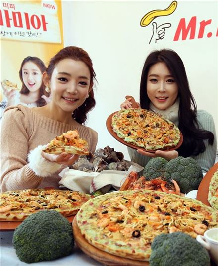 [아시아경제 오주연 기자]MPK그룹이 운영하는 미스터피자는 해산물과 브로콜리 수프를 이용한 프리미엄 신제품 '맘미미아' 피자를 출시했다고 21일 밝혔다. 맘미미아 피자는 제품 가장자리에 브로콜리 치즈 수프를 접목해 베이컨과 브로콜리 치즈 수프가 어우러진 것이 특징이다.토핑으로는 게살, 참소라, 깔라마리, 새우 등 해산물을 풍성하게 얹고 오븐치즈 포테이토와 이탈리아 정통 햄 살라미를 더했다. 가격은 레귤러 사이즈 2만7900원, 라지 사이즈가 3만5900원이다.오주연 기자 moon170@asiae.co.kr<ⓒ세계를 보는 창 경제를 보는 눈, 아시아경제(www.asiae.co.kr) 무단전재 배포금지>