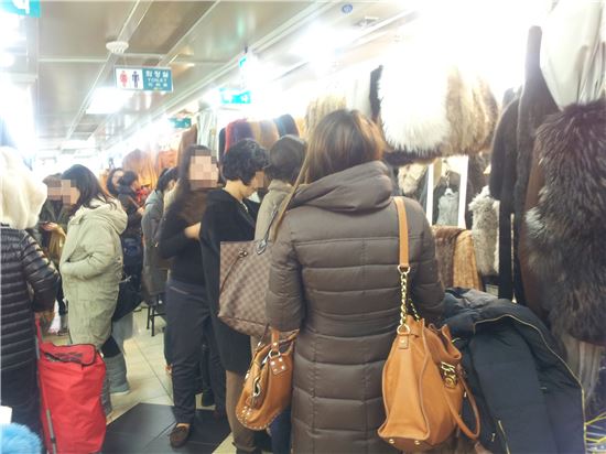 동대문 광희시장이 모피제품을 사러온 여성들로 붐비고 있다.