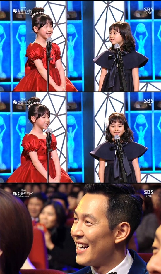 [아시아경제 유수경 기자]아역배우 갈소원이 이정재에게 '아빠 미소'를 선물했다.갈소원은 22일 오후 서울 동대문구 회기동 경희대학교 평화의 전당에서 열린 '제34회 청룡영화상' 시상식에 참석해 동갑내기 배우 이레와 함께 무대에 올랐다.이날 갈소원은 "우리 여덟 살 동갑이니까 말 놓자"고 말문을 열어 웃음을 자아냈다. 이에 응한 이레는 "이정재 정우성 삼촌처럼 우리도 오래 오래 친하게 지내자"고 말해 눈길을 끌었다.또 이레는 자신의 소원에 대해 "엄지원 엄마처럼 마음도 얼굴도 예쁜 여배우가 되고싶다"며 "나중에 설경구 아빠처럼 자상하고 여진구 오빠 같이 잘생긴 남자친구가 갖고 싶다"고 말했다.이에 갈소원은 "난 요즘 이현우 오빠가 멋지더라"며 "이정재 삼촌도 '관상'에서 멋지다던데, '관상'을 보려면 7년이나 기다려야 한다"고 밝혀 이정재를 웃음 짓게 만들었다.앞서 이레는 설경구, 엄지원과 함께 '소원'에서 열연을 펼쳤으며 갈소원은 류승룡과 '7번방의 선물'에서 호흡을 맞춘 바 있다.한편 제34회 청룡영화상은 영화계 전문가로 이뤄진 예심단의 설문과 네티즌 투표가 반영돼 작품성은 물론, 흥행성까지 고루 갖춘 21편의 작품이 엄선돼 경합을 벌였다. 배우 김혜수와 유준상이 지난해에 이어 사회를 맡았으며, 가수 인순이 이적 미쓰에이 등이 축하 공연에 나섰다.유수경 기자 uu84@asiae.co.kr<ⓒ세계를 보는 창 경제를 보는 눈, 아시아경제(www.asiae.co.kr) 무단전재 배포금지>