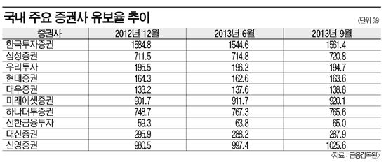 10대 증권사 중 7곳 내부 유보율 증가몸사리기만 급급 경쟁력 퇴보 우려[아시아경제 조태진 기자]국내 주요 증권사들이 투자보다 현금 쌓기에만 주력한 것으로 나타났다. 이들 증권사는 일제히 내년 주식시장에 봄바람이 불 것이라는 전망을 내놓고 있지만, 정작 경쟁력 제고를 위한 투자에는 인색한 모습이다. 25일 금융감독원에 따르면 2013회계연도 2분기 현재 국내 10대 증권사 가운데 7곳의 현금 내부유보율이 전분기보다 증가했다. 대형증권사 '빅5'의 경우 우리투자증권을 제외한 4곳이 모두 유보율이 늘어났다. 업체별로 한국투자증권은 유보율이 무려 1561.4%로 업계 전체에서 가장 높았다. 전분기 1544.6%와 비교해도 16.8%포인트나 증가했다. 한국투자증권 관계자는 "다른 증권사보다 주주 납입분인 자본잉여금이 많아서 비율이 높게 책정된 것"이라며 "배당도 합리적인 수준에서 책정했다"고 말했다. 삼성증권은 2분기 유보율이 720.8%로 전분기 714.8%보다 6%포인트 늘어났다. 2분기 당기순이익이 309억원을 기록한 가운데 150억원 정도의 현금을 축적시켰다. 이밖에 대우증권과 현대증권의 2분기 유보율도 각각 138.8%와 163.6%로 전분기보다 소폭 증가했다. 내부 유보율은 잉여금을 자본금으로 나눈 비율로 이 숫자가 높을수록 현금을 투자하지 않고 쌓아두고 있다는 의미다. 기업들이 미래 자금 수요에 대비해 이익을 투자 또는 배당하기보다는 내부적으로 쌓아놓는 것으로, 이 비율이 높으면 재무구조가 안정적이지만 투자가 소홀한 만큼 미래 수익 창출력은 떨어질 수 밖에 없다. 금융투자업계 한 관계자는 "증권사 평균 유보율이 200% 정도인 가운데 대형증권사는 500%가 넘는다"며 "가뜩이나 금융당국의 각종 규제 강화로 먹거리 확보가 여의치 않은 상황에서 선두 업체들이 몸사리기에 치중하는 것은 바람직하지 않다고 본다"고 지적했다. 차별화된 전략 구사가 상대적으로 어려운 중소형 증권사도 곳간 채우기에 급급했다. 신영증권은 2분기 당기순이익 349억원을 기록한 가운데 106억원을 회사 곳간에 채우면서 유보율이 1025.6%에 달했다. 미래에셋증권과 하나대투증권의 유보율도 각각 920.1%, 765.6%로 상대적으로 높았다. 모 중소형 증권사 경영기획담당 임원은 "올해 경영여건이 사상 최악인 가운데 대형사보다 좁은 영업환경에서 적극적인 투자는 모험에 가깝다는 판단"이라며 "장기적인 측면에서 산업 경쟁력이 문제가 될 수 있다는 점은 동의하지만 현재로서는 어쩔 수가 없다"고 토로했다. 이런 가운데 지난 2008년 리먼사태 촉발 당시시장에 신규 진입한 증권사들의 유보율은 대부분 마이너스로 업종 내 재정 불균형이 심화되고 있다. 실제로 애플투자증권(-64.2%), 비오에스투자증권(-64.6%), 한맥투자증권(-29.5%), IBK투자증권(-0.9%)의 경우 누적 결손금으로 자본이 잠식되고 있는 상태다. 조태진 기자 tjjo@asiae.co.kr<ⓒ세계를 보는 창 경제를 보는 눈, 아시아경제(www.asiae.co.kr) 무단전재 배포금지>