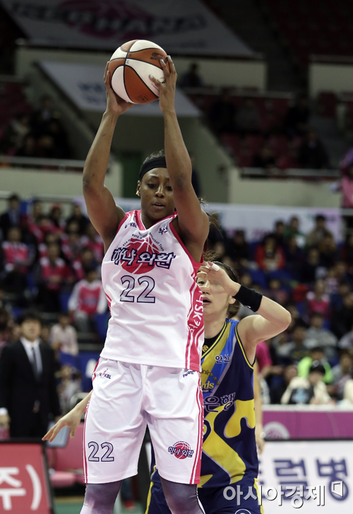 [부천=아시아경제 정재훈 기자] 25일 오후 부천실내체육관에서 열린 우리은행 2013-2014 여자프로농구 하나외환과 신한은행의 경기. 하나외환 모니카라이트가 리바운드를 잡고 있다.정재훈 기자 roze@asiae.co.kr<ⓒ세계를 보는 창 경제를 보는 눈, 아시아경제(www.asiae.co.kr) 무단전재 배포금지>