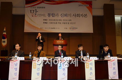 [아시아경제 백소아 기자] 한광옥 국민대통합위원회 위원장이 26일 서울 중구 프레스센터에서 열린 국민통합 공감토론회 '말(언어), 통합과 신뢰의 사회자본'에서 개회사를 하고 있다.백소아 기자 sharp2046@asiae.co.kr<ⓒ세계를 보는 창 경제를 보는 눈, 아시아경제(www.asiae.co.kr) 무단전재 배포금지>