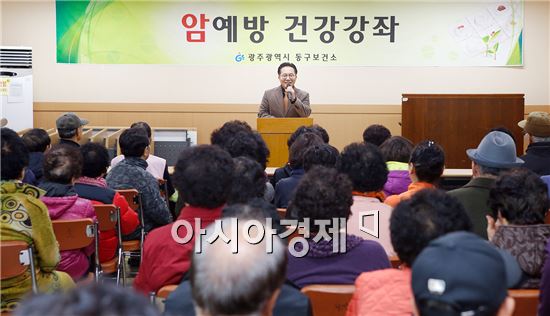 [아시아경제 노해섭 기자]광주광역시 동구(청장 노희용)는 26일 보건소 2층 보건교육실에서 신민호 교수(화순전남대학교병원 암센터)를 초청 주역주민과 직원들을 대상으로 암 조기검진의 필요성 및 암 예방을 위한 일상생활 관리법에 대한 교육을 실시했다.노해섭 기자 nogary@<ⓒ세계를 보는 창 경제를 보는 눈, 아시아경제(www.asiae.co.kr) 무단전재 배포금지>