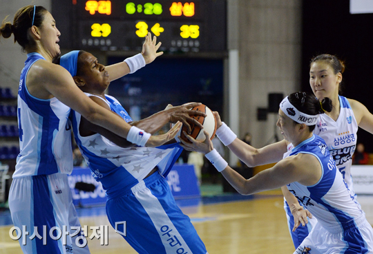 [용인=아시아경제 정재훈 기자] 28일 오후 용인실내체육관에서 열린 우리은행 2013-2014 여자프로농구 삼성생명과 우리은행의 경기. 우리은행 굿렛과 삼성생명 이미선이 공을 다투고 있다.정재훈 기자 roze@asiae.co.kr<ⓒ세계를 보는 창 경제를 보는 눈, 아시아경제(www.asiae.co.kr) 무단전재 배포금지>