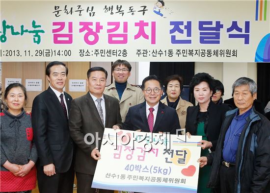 [아시아경제 노해섭 기자]광주시 동구 산수1동 주민복지공동체위원회는 29일 산수1동 주민 센터에서 김장김치를 담아 독거노인, 가정위탁 등 20여 세대에 전달했다.