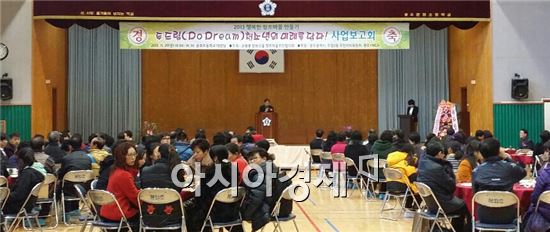 [아시아경제 노해섭 기자]광주시 북구 두암2동은 지난 29일 문화초등학교 대강당에서 송광운 광주시 북구청장, 주민, 학부모 ,학생 등 200여명이 참석한 가운데 행복한 창조마을 만들기 두 드림(Do Dream)사업결과보고회와 도록을 전달하는 행사를 개최했다.군왕봉참판고을 창조마을추진협의회(회장 양용석) 의 주관으로 열린 행복한 창조마을 만들기 두 드림(Do Dream)사업은 마을의 미래 동력인 초·중학생들의 진로교육을 통해 자신을 탐색하고 성격유형을 흥미분야별로 진단해 진로를 결정하는 꿈을 가진 건강한 청소년으로 육성하기 위해 마련됐다.노해섭 기자 nogary@<ⓒ세계를 보는 창 경제를 보는 눈, 아시아경제(www.asiae.co.kr) 무단전재 배포금지>