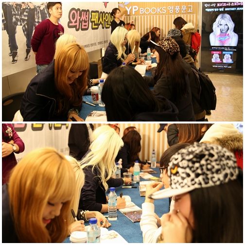 [아시아경제 이금준 기자]그룹 와썹이 첫 사인회를 마친 소감을 전했다. 이들은 "잊을 수 없는 하루였다"고 떨리는 목소리로 입을 모았다.와썹은 7일 오후 서울 동대문 청량리 롯데플라자 영풍문고에서 데뷔 후 첫 사인회를 열고 약 200여 팬들을 만났다. 멤버들은 팬 한 사람, 한 사람과 인사를 나누는 한편, 악수와 포옹을 하는 등 정성을 다했다.사인회 시간은 약 40분. 하지만 예상을 뛰어 넘는 팬들이 몰렸고, 와썹은 예정된 시간을 훌쩍 넘기면서까지 현장을 찾아준 팬들과 직접 만났다.팬 사인회를 끝낸 리더 진주는 첫 팬 사인회라 그런지 데뷔 무대만큼이나 떨렸다. 정말 소중한 시간을 보내 행복하다"면서 "팬들과 헤어지기 싫을 정도로 애틋했다. 오늘 오신 분들은 잊을 수 없을 것 같다"고 말했다.나다는 "항상 팬분들이 궁금했는데 이렇게 얼굴을 보고 이야기를 나눠 정말 좋은 시간이었다. 대학에 입학할 때처럼 설렌 하루였다. 팬 사인회가 끝나 아쉽지만 정말 행복했다"고 밝혔다.