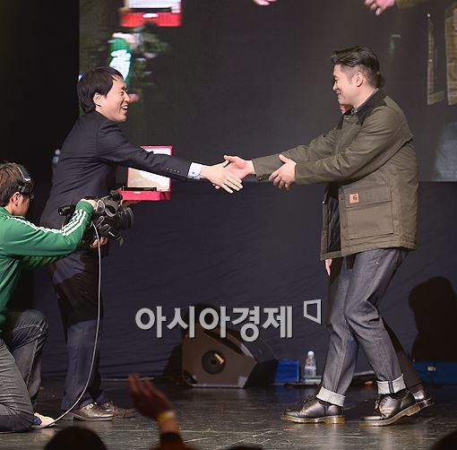 [아시아경제 정준영 기자] 스포츠투데이 황용희 대표이사가 10일 오후 서울 광진구 광장동 유니클로 악스홀에서 열린 '제1회 대한민국 K-HIPHOP문화페스티벌'에 참석해 다이나믹듀오와 악수하고 있다.'제1회 대한민국 K-HIPHOP문화페스티벌'은 한국힙합문화협회와 스포츠투데이가 주최하며, 신예 힙합퍼 및 각종 세계대회 우승전력이 있는 힙합 댄스크루 등 총 22개팀의 힙합퍼들이 출연한다. 이번 공연은 출연진 전원이 재능기부로 참여하여 관객과 함께 나눔을 실천하게 된다. 티켓의 순 수익금은 사회복지기관 및 근로장학생들의 장학금으로 기부될 예정이다.정준영 기자 jjy@asiae.co.kr<ⓒ세계를 보는 창 경제를 보는 눈, 아시아경제(www.asiae.co.kr) 무단전재 배포금지>