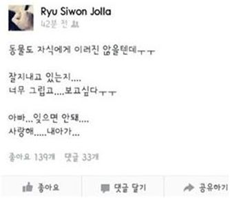 ▲류시원 부성애 글 공개(출처: 배우 류시원 페이스북)