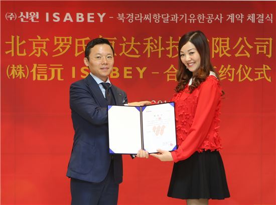 박정빈 신원 부회장(좌)과 북경라씨항달과기유한공사 뤄카이꿰이 총경리