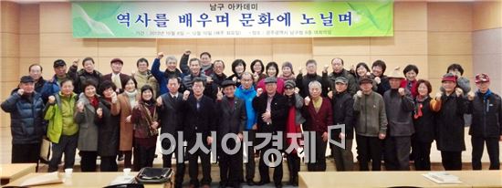 [아시아경제 노해섭 기자]광주 남구(구청장 최영호)는 지난 10월 8일부터 "역사를 배우며 문화에 노닐며" 라는 주제로 남구아카데미 교육을 총 10회 과정으로 운영하고 10일 오후 구청 대회의실에서 수료식을 가졌다. 사진제공=광주시 남구 노해섭 기자 nogary@<ⓒ세계를 보는 창 경제를 보는 눈, 아시아경제(www.asiae.co.kr) 무단전재 배포금지>