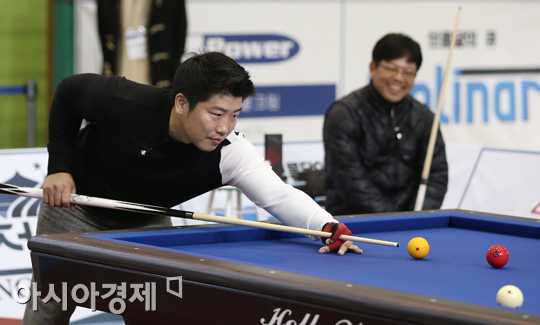 [아시아경제 정재훈 기자] 11일 서울 노원구 상명고등학교 체육관에서 열린 제2회 프로야구선수 3쿠션 당구대회. 박재홍 해설위원이 경기에 임하고 있다.정재훈 기자 roze@asiae.co.kr<ⓒ세계를 보는 창 경제를 보는 눈, 아시아경제(www.asiae.co.kr) 무단전재 배포금지>