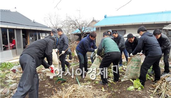 [아시아경제 노해섭 기자]순천시맑은물관린센터 직원 50여 명은 13일 송년회를 대신해 오림마을 홀로 사는 노인, 소년소녀가장세대 등 어려운 이웃을 방문하여 봉사활동을 펼쳤다.이번 봉사활동은 송년행사를 좀 더 의미 있게 해보자는 직원들의 의견을 모아 준비됐다.직원들은 맑은물관리센터 인근 오림마을 주민 중 생활이 어렵고 소외된 세대를 찾아 대청소 및 환경정비, 겨울맞이 방풍공사 실시하고 쌀, 장작, 이불 등 필요물품을 전달했다.