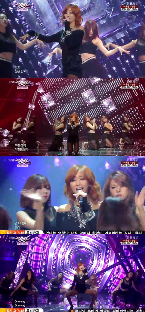 [아시아경제 스포츠투데이 장용준 인턴기자]가수 효린이 관객들의 시선을 잡아끄는 매혹적인 춤과 노래를 선사했다.효린은 13일 오후 방송된 KBS2 '뮤직뱅크'에 출연해 '너 밖에 몰라'를 열창했다. 이날 그는 몸에 달라붙는 블랙 컬러의 의상으로 등장, 매혹적인 안무와 노래로 팬들의 눈과 귀를 사로잡았다.'너 밖에 몰라'는 힙합 알앤비 장르의 멜로디와 탱고비트가 조화를 이룬 곡으로, 효린 특유의 가창력이 돋보인다는 평이다.한편 이날 방송에는 효린, 빅스, 엑소, 용준형, 크레용팝, 노을, 시크릿, 윤하, 코요태, 로맨틱J, 제이워크, M.I.B, 테이스티, 태진아, 히스토리, 앤씨아, 케이헌터, 혜이니, 무브 인 키 등이 출연했다.장용준 인턴기자 zelra@asiae.co.kr<ⓒ세계를 보는 창 경제를 보는 눈, 아시아경제(www.asiae.co.kr) 무단전재 배포금지>