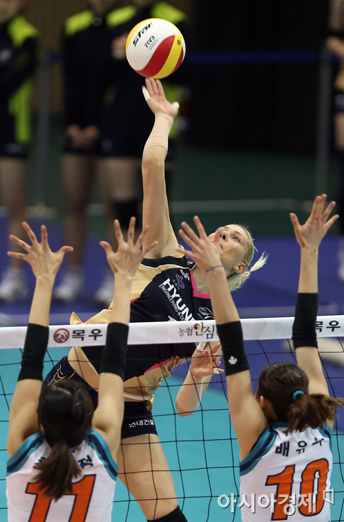 [수원=아시아경제 정재훈 기자] 17일 오후 수원실내체육관에서 열린 NH농협 2013-2014 V리그 여자부 현대건설과 GS칼텍스의 경기. 현대건설 바샤가 공격을 시도하고 있다.정재훈 기자 roze@asiae.co.kr<ⓒ세계를 보는 창 경제를 보는 눈, 아시아경제(www.asiae.co.kr) 무단전재 배포금지>정재훈 사진기자 roze@asiae.co.kr<ⓒ아시아 대표 석간 '아시아경제' (www.newsva.co.kr) 무단전재 배포금지>