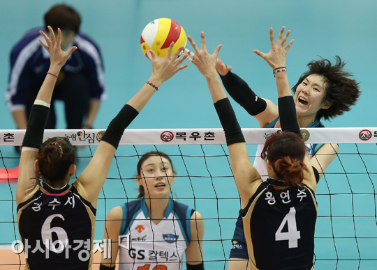 [수원=아시아경제 정재훈 기자] 17일 오후 수원실내체육관에서 열린 NH농협 2013-2014 V리그 여자부 현대건설과 GS칼텍스의 경기. GS칼텍스 이소영이 스파이크를 때리고 있다.정재훈 기자 roze@asiae.co.kr<ⓒ세계를 보는 창 경제를 보는 눈, 아시아경제(www.asiae.co.kr) 무단전재 배포금지>정재훈 사진기자 roze@asiae.co.kr<ⓒ아시아 대표 석간 '아시아경제' (www.newsva.co.kr) 무단전재 배포금지>