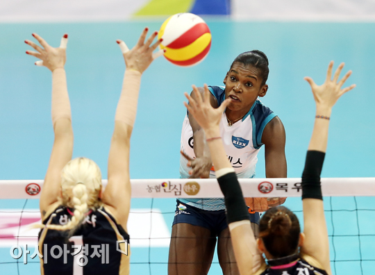 [수원=아시아경제 정재훈 기자] 17일 오후 수원실내체육관에서 열린 NH농협 2013-2014 V리그 여자부 현대건설과 GS칼텍스의 경기. GS칼텍스 베띠가 스파이크를 때리고 있다.정재훈 기자 roze@asiae.co.kr<ⓒ세계를 보는 창 경제를 보는 눈, 아시아경제(www.asiae.co.kr) 무단전재 배포금지>정재훈 사진기자 roze@asiae.co.kr<ⓒ아시아 대표 석간 '아시아경제' (www.newsva.co.kr) 무단전재 배포금지>