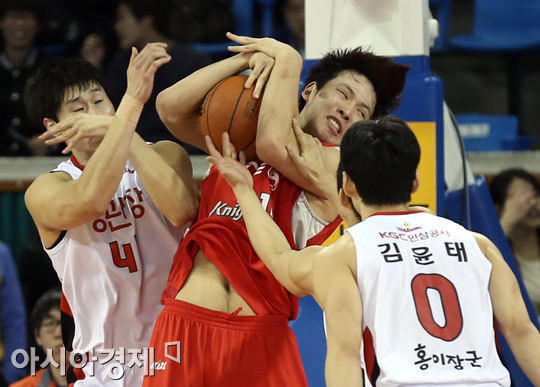 [아시아경제 정재훈 기자] 18일 오후 서울 잠실학생체육관에서 열린 KB국민카드 2013~2014 프로농구 SK와 KGC의 경기. SK 최부경이 상대 수비로부터 공을 지키고 있다.정재훈 기자 roze@asiae.co.kr<ⓒ세계를 보는 창 경제를 보는 눈, 아시아경제(www.asiae.co.kr) 무단전재 배포금지>