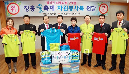 [아시아경제 노해섭 기자]장흥군은 지난 장흥 물 축제 때 매년 군 산하 공무원들에게 배부했던 '자원봉사자 옷 수집운동'을 펼쳐 1,500여벌을 국제로타리 3610지구(한솔로타리)에 전달했다. 이 옷은 태풍피해로 큰 어려움을 겪고 있는 필리핀 이재민 등에게 보내지게 되며 '유니세프 협력도시'인 장흥군은 매년 물 축제 체험료 전액을 세계 물 기근 국가 식수개선 사업을 위해 유니세프에 기탁 해오고 있다. 한편, 장흥 물 축제는 소재의 독창성, 발전성 등에서 축제 전문가들로 부터 좋은 평가를 받아 문화체육관광부 선정 '2014 대한민국 문화관광 유망축제'에 2년 연속 영예를 안았으며, 소비자가 뽑은 올해의 브랜드대상에는 6년 연속 선정되기도 했다. 장흥 물 축제는 매년 7월말부터 8월초에 장흥읍 탐진강 및 편백숲 우드랜드 일원에서 “물과 숲 - 休”을 주제로 7일간 개최된다. 노해섭 기자 nogary@<ⓒ세계를 보는 창 경제를 보는 눈, 아시아경제(www.asiae.co.kr) 무단전재 배포금지>