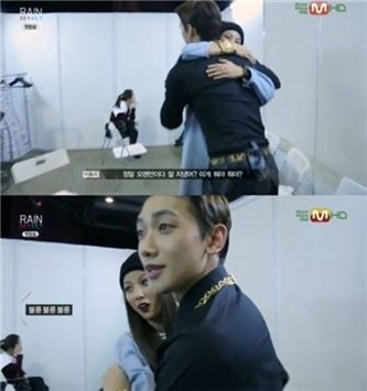 [아시아경제 온라인이슈팀] 레인이펙트에서 가수 비와 이효리가 포옹하는 모습이 공개됐다. 지난 19일 첫 방송된 Mnet '레인 이펙트'에서 가수 비가 홍콩에서 열린 '2013 MAMA' 공연에 앞서 이효리의 대기실을 찾는 모습이 그려졌다. 문을 열고 들어가자 마침 가수 이하늘이 있었고 비는 이하늘과 인사를 나누었다. 그리고는 곧바로 이효리에게 다가가 포옹하며 반가움을 표시했다. 비의 갑작스런 등장에 이효리는 "정말 오랜만이다. 잘 지냈어?"라며 안부를 묻다가 '레인이펙트'의 카메라를 보고 '이거 뭐냐'며 의아해했다. 옆에 있던 이하늘은 이를 놓칠세라 "불륜, 불륜"이라고 외쳐 좌중을 웃음바다로 만들었다. 이하늘의 짓궂은 농담에 이효리는 "이제 누나는 함부로 대해도 되는 누나가 아니다"라고 너스레를 떨었다. 이효리의 응수에 이하늘은 "조심해라, 너희 이제 불륜이다"라며 비와 이효리를 계속해서 놀렸다. 레인이펙트 방송은 본 네티즌들은 "레인이펙트 비와 이효리, 예전에 탱고 추던 때가 생각난다", "레인이펙트 비와 이효리, 이제 둘다 임자있는 몸이네", "레인이펙트, 비와 이효리 절친이였어?" 등의 반응을 보였다. 온라인이슈팀 <ⓒ세계를 보는 창 경제를 보는 눈, 아시아경제(www.asiae.co.kr) 무단전재 배포금지>