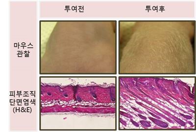 메디포스트가 연구 중인 발모 의약품의 동물실험(쥐 실험) 결과<br />
