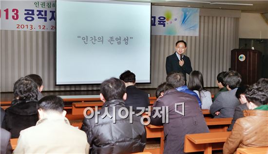 [아시아경제 노해섭 기자]광주시 동구청(청장 노희용)은 20일 민방위교육장에서 문은현 국가인권위원회 사무관을 강사로 초청, 동구청 전직원을 대상으로 '지방행정과 인권'이란 주제로 공직자 인권감수성 향상 교육을 실시했다. 사진제공=광주시 동구노해섭 기자 nogary@<ⓒ세계를 보는 창 경제를 보는 눈, 아시아경제(www.asiae.co.kr) 무단전재 배포금지>