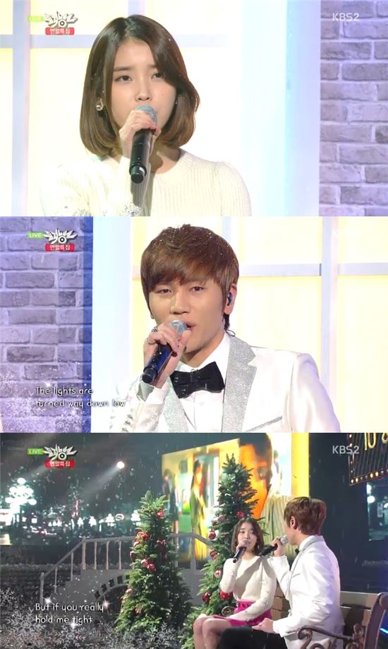 [아시아경제 박건욱 기자]가수 케이윌과 아이유가 한 편의 뮤지컬을 보는 듯한 무대로 시청자들의 눈길을 끌었다.케이윌과 아이유는 20일 오후 방송한 KBS2 '뮤직뱅크에 출연해 '렛 잇 스노 레 잇 스노 렛 잇 스노(Let it snow Let it snow Let it snow)' 무대를 선사했다. 이들은 아름다운 하모니로 시청자들의 감성을 자극했다. 뿐만 아니라 노래 중간 무대 중앙으로 나와 깜찍한 커플댄스를 추며 보는 이들에게 색다른 재미를 선사하기도 했다.한편 연말결산 크리스마스 특집으로 진행된 이날 방송에서는 샤이니, 비스트, 엑소, 인피니트, 2PM, 미쓰에이, 씨스타, 아이유, 카라, 빅스, 에일리, 케이윌, 다이나믹듀오, 포미닛, 크레용팝, 에이핑크, 걸스데이, 나인뮤지스, 틴탑, MIB, AOA, 킹스턴루디스카 등이 출연해 멋진 무대를 선보였다. 박건욱 기자 kun1112@asiae.co.kr<ⓒ세계를 보는 창 경제를 보는 눈, 아시아경제(www.asiae.co.kr) 무단전재 배포금지>