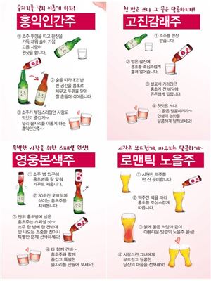 [아시아경제 이광호 기자]최근 기업 송년회나 회식을 비롯해 연말 모임 술자리가 점차 가벼워지는 추세다. 기업들도 짧고 가볍게 즐기는 회식 문화를 독려하고 있고, 젊은 층을 중심으로 전형적인 소맥 폭탄주 대신 다양한 음료를 술과 섞어 색다르게 즐기는 믹스주 트렌드가 떠오르고 있다.가장 대표적인 믹스주는 소주에 홍초를 섞어 만드는 '홍초주'다. 홍초주는 소주 한 병에서 한 잔을 따라내고, 홍초 50ml을 섞어 만드는 칵테일 소주다. 고운 빛깔과 달콤한 맛으로 특히 여성들에게 인기가 좋다. 피로회복에 좋은 식초와 피부미용에 좋은 석류 덕분에 그냥 소주를 마시는 것보다 다음 날도 숙취가 덜하다는 의견이 많다. 대상은 최근 송년회를 위한 네 가지 홍초주 레시피를 공개했다. 먼저 소주 1잔을 따라내고 빈 공간에 홍초 50ml를 넣고 섞는 '홍익인간주', 소주잔에 홍초가 가라앉도록 살짝 따라 첫 맛은 쓰지만 끝 맛은 달콤한 '고진감래주', 홍초50ml 병을 소주병 위에 세워 자동으로 섞이게 만드는 '영웅본색주', 홍초가 맥주와 섞여 아름다운 붉은 빛을 내는 '로맨틱 노을주' 등이다.최근에는 '비타주' 레시피가 누리꾼들 사이에서 화제가 되고 있다. 비타주는 소주 한 병과 비타500 2∼3병을 취향에 따라 조절해 섞어 마시는 칵테일 소주다. 소주 한 병과 비타500 2병으로 만든 비타주는 목 넘김이 부드럽고, 비타500 3병을 넣으면 상큼한 맛과 함께 선명한 노란 빛깔로 여성들에게 특히 반응이 좋다.원두커피를 활용한 칵테일 소주 레시피 '소원주'도 인기다. 소주와 원두커피를 1대 5 비율로 넣어 만드는 소원주는 은은한 원두의 향 덕분에 마시기 편하고 도수도 낮아 젊은 층에게 인기다.이광호 기자 kwang@asiae.co.kr<ⓒ세계를 보는 창 경제를 보는 눈, 아시아경제(www.asiae.co.kr) 무단전재 배포금지>