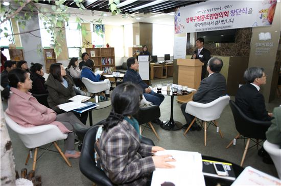 협동조합들이 자발적으로 성북구협동조합협의회를 구성하고 창단식을 개최하는 장면<br />