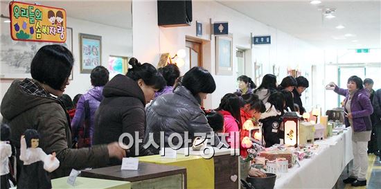 [아시아경제 이진택 기자]구례군 장애인 복지관은 지난 20일 장애인이 주인공이 되어 지역주민과 장애인 가족들을 초청해 '꿈꾸는 문화축제'를 개최했다.이날 악동놀이패(전남자연과학고등학교 재능기부)의 풍물을 시작으로 행사장을 신명나게 흥을 돋우었다.이번 행사는 구례군장애인복지관(관장 선종완) 사회재활 프로그램을 통해 자립 및 재활을 위한 프로그램의 결과물인 공예작품, 도자기작품, 뜨개작품, 서예작품 및 자기 이름을 직접 쓰며 공부한 한글노트 등을 전시하는 등 작은 카페를 운영해 따뜻한 차와 직접 만든 음식을 함께 나누었다. 또한 장애인의 작품이라는 편견을 버리고, 작품의 완성도를 높여가는 과정을 높이 평가하고, 꾸준한 한글 프로그램을 통해 본인의 이름 쓰기 등 점차 변화해 가는 모습을 볼 수 있는 기회를 만들었다. 이진택 기자 <ⓒ세계를 보는 창 경제를 보는 눈, 아시아경제(www.asiae.co.kr) 무단전재 배포금지>