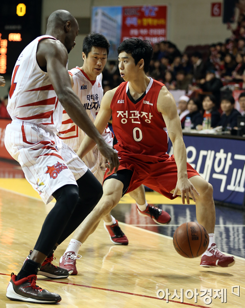 [안양=아시아경제 정재훈 기자] 24일 오후 안양실내체육관에서 열린 'KB국민카드 2013~2014 프로농구' KGC와 오리온스의 경기. KGC 김윤태가 패스할 곳을 찾고 있다.정재훈 기자 roze@asiae.co.kr<ⓒ세계를 보는 창 경제를 보는 눈, 아시아경제(www.asiae.co.kr) 무단전재 배포금지>