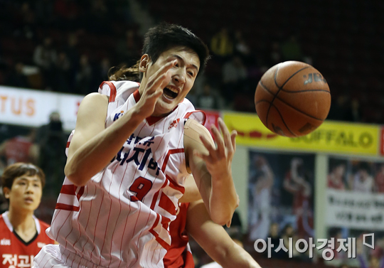 [안양=아시아경제 정재훈 기자] 24일 오후 안양실내체육관에서 열린 'KB국민카드 2013~2014 프로농구' KGC와 오리온스의 경기. 오리온스 최진수가 공을 놓치고 있다.정재훈 기자 roze@asiae.co.kr<ⓒ세계를 보는 창 경제를 보는 눈, 아시아경제(www.asiae.co.kr) 무단전재 배포금지>