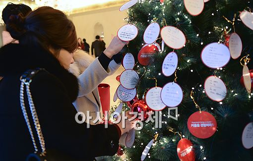 [아시아경제 정준영 기자] 25일 오후 서울 강남구 역삼동 라움에서 열린 '솔로1004' 파티에 참석한 여성 참가자가 '인연 트리'에 사연을 걸고 있다.'솔로1004' 파티는 보건복지부 산하의 순수 민간의료봉사 단체 사단법인 연우가 마련한 특별한 이벤트로 전국의 솔로 남성 502명과 여성 502명, 총 1004명이 '짝 찾기'에 나섰다.정준영 기자 jjy@asiae.co.kr<ⓒ세계를 보는 창 경제를 보는 눈, 아시아경제(www.asiae.co.kr) 무단전재 배포금지>