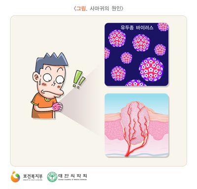 ▲사마귀 생기는 원인.(출처: 국가건강정보포털)