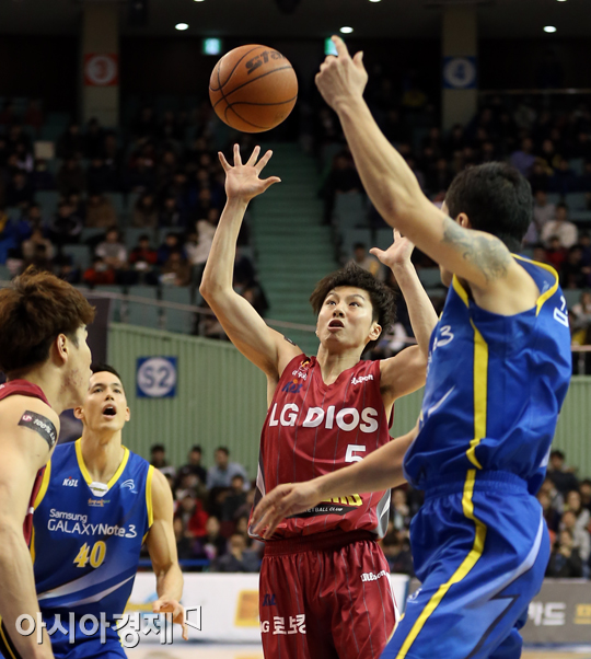 [아시아경제 정재훈 기자] 27일 오후 서울 잠실실내체육관에서 열린 KB국민카드 2013~2014 프로농구 삼성과 LG의 경기. LG 김시래가 삼성 김승현의 패스를 가로채고 있다.정재훈 기자 roze@asiae.co.kr<ⓒ세계를 보는 창 경제를 보는 눈, 아시아경제(www.asiae.co.kr) 무단전재 배포금지>