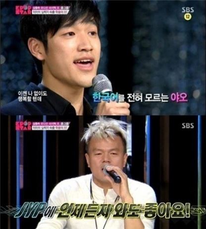 ▲중국인 야오 웨이타오(사진 위)와 박진영(사진아래)(출처: SBS '서바이벌 오디션 K팝스타 시즌3')