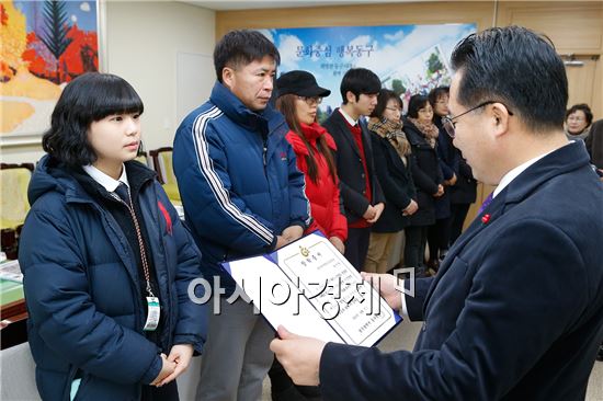 [아시아경제 노해섭 기자]광주광역시 동구(청장 노희용)는 30일 3층 접견실에서 사회복지기금 장학증서 전달식을 개최했다. 동구는 관내 거주하는 저소득 주민 자녀중 학업성적이 우수한 학생 10명을 선발해 사회복지기금에서 지급하는 장학금과 함께 장학증서를 전달했다. 사진제공=광주시 동구노해섭 기자 nogary@<ⓒ세계를 보는 창 경제를 보는 눈, 아시아경제(www.asiae.co.kr) 무단전재 배포금지>