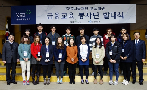 [아시아경제 김유리 기자]한국예탁결제원 KSD나눔재단은 30일 일산센터에서 '드림스타트' 취약계층아동을 대상으로 금융교육 봉사활동을 수행할 '교육대생 금융교육봉사단 발대식'을 가졌다.드림스타트는 취약계층 아동의 전인적 발달을 도모하기 위해 맞춤형 통합서비스를 제공하는 아동복지사업이다. 이번 '교육대생 금융교육 봉사단'은 전국 10개 교육대학교에서 18명이 선발됐다. 이들은 내년 1~2월 겨울방학기간 중 강원도 태백시를 비롯한 전국 시군구 드림스타트에 배치돼 봉사활동을 하게 된다.예탁결제원은 지난 2005년부터 증권박물관과 연계한 금융교육을 실시해 아동·청소년 등 총 수강자가 13만5000여명에 이르고 있다. 이에 지난 1월에는 교육부로부터 교육기부 우수기관으로 지정받기도 했다.김유리 기자 yr61@asiae.co.kr<ⓒ세계를 보는 창 경제를 보는 눈, 아시아경제(www.asiae.co.kr) 무단전재 배포금지>