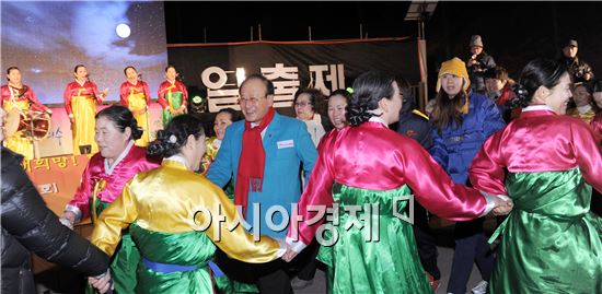 [아시아경제 노해섭 기자] 국내 4대 기도도량인 여수 향일암에서 열린 제18회 향일암 일출제에 3만8000여명의 일출 관람객들이 방문한 가운데 1일 자정부터 진행된 타종식과 새해맞이 행사에 김충석 여수시장과 관람객들이 함께 참여하고 있다. 사진제공=여수시노해섭 기자 nogary@<ⓒ세계를 보는 창 경제를 보는 눈, 아시아경제(www.asiae.co.kr) 무단전재 배포금지>