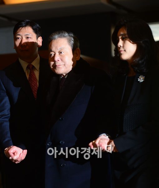 [아시아경제 백소아 기자] 이건희 삼성그룹 회장(가운데)이 2일 서울 중구 신라호텔에서 2014 신년하례식에 참석하기 위해 이부진 호텔신라 사장(오른쪽)의 손을 잡고 입장하고 있다.백소아 기자 sharp2046@asiae.co.kr<ⓒ세계를 보는 창 경제를 보는 눈, 아시아경제(www.asiae.co.kr) 무단전재 배포금지>