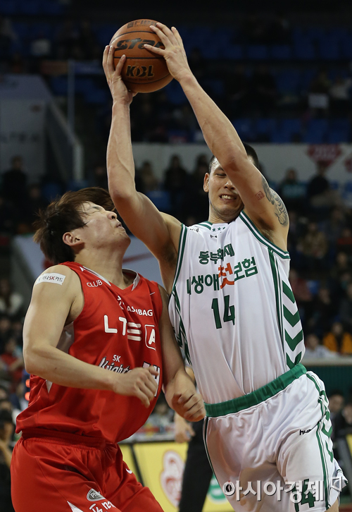 [아시아경제 정재훈 기자] 3일 오후 서울 잠실학생체육관에서 열린 KB국민카드 2013~2014 프로농구 SK와 동부의 경기. 동부 이승준이 돌파를 시도하다 SK 최부경에게 오펜스 파울을 범하고 있다.정재훈 기자 roze@asiae.co.kr<ⓒ세계를 보는 창 경제를 보는 눈, 아시아경제(www.asiae.co.kr) 무단전재 배포금지>