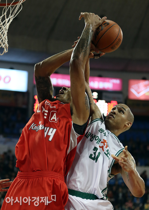 [아시아경제 정재훈 기자] 3일 오후 서울 잠실학생체육관에서 열린 KB국민카드 2013~2014 프로농구 SK와 동부의 경기. 동부 모스가 SK 심스의 슛을 블로킹하고 있다.정재훈 기자 roze@asiae.co.kr<ⓒ세계를 보는 창 경제를 보는 눈, 아시아경제(www.asiae.co.kr) 무단전재 배포금지>